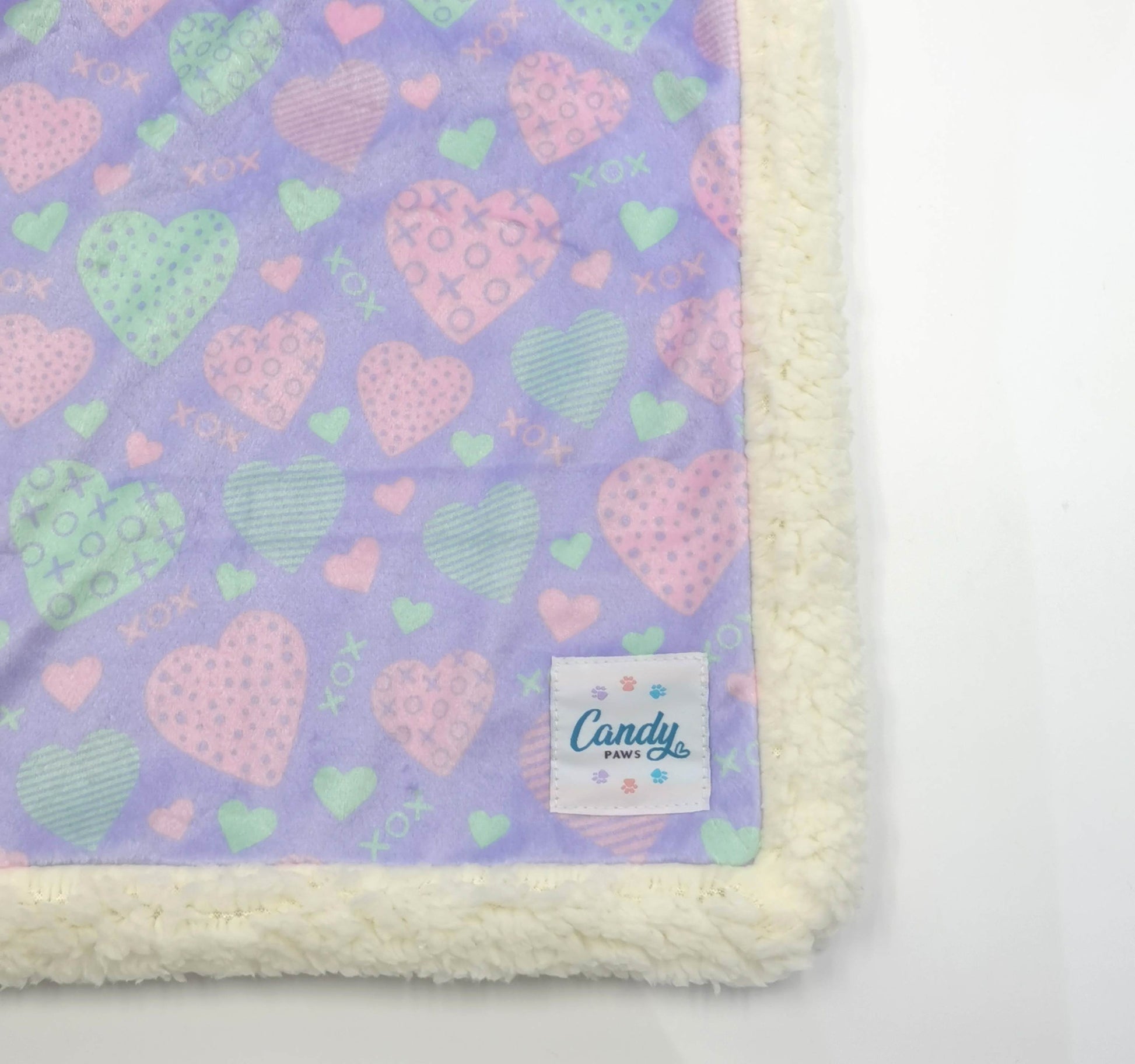 Our dog blankets are made of soft minky material on one side and sherpa on the other, perfect for your dog to snuggle up to in the day or night. The blanket measures 70cm x 100 cm.