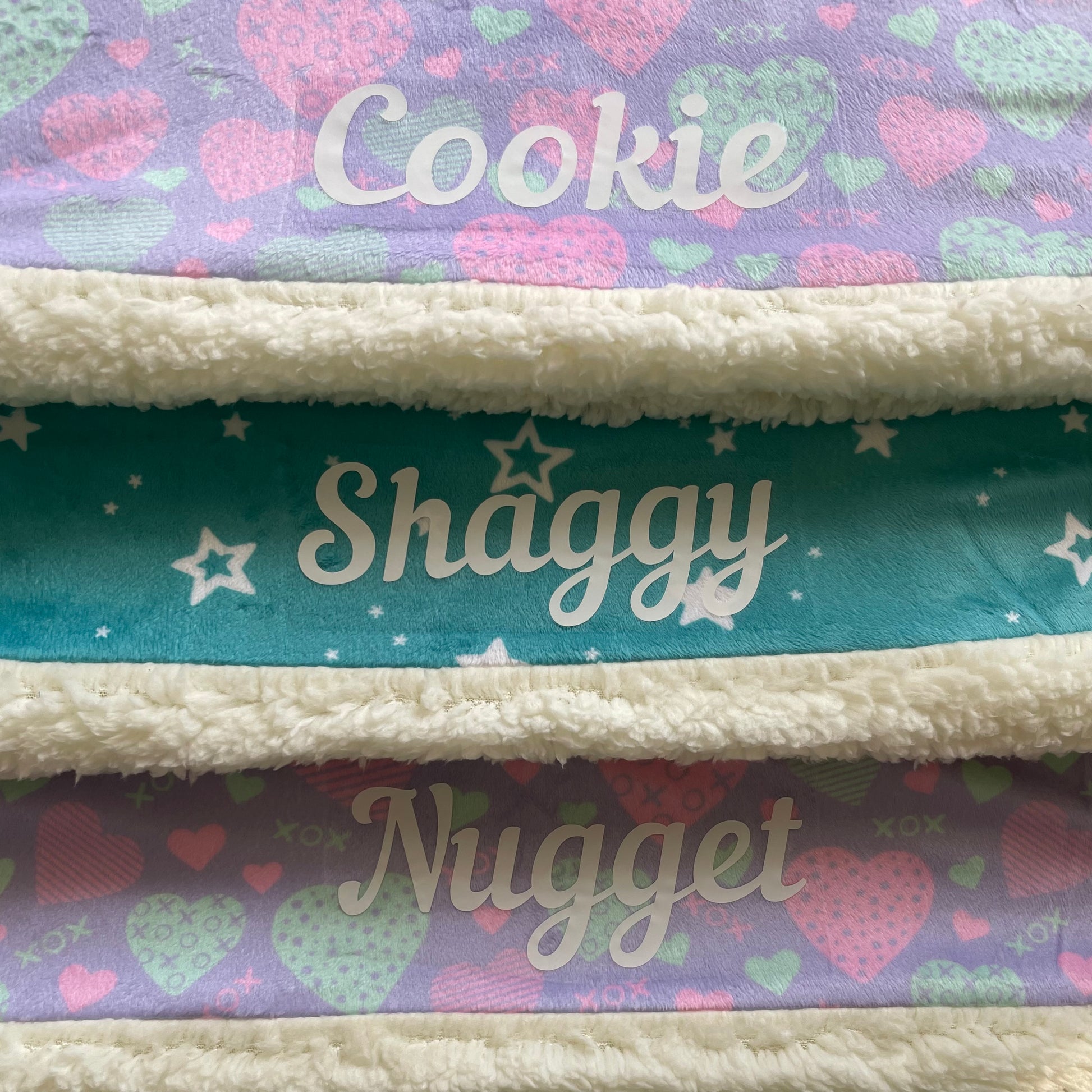 Blankets can be personalised with your pet's name. To personalise your blanket, please select 'Blanket with Name' and then add the name in the comment box at checkout.