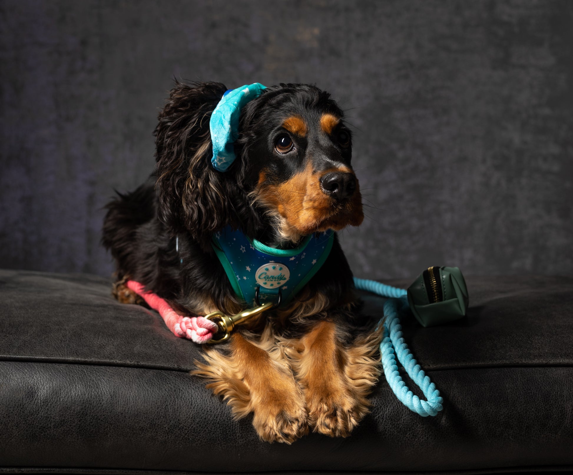 We present to you the matching hair scrunchie! Who doesn't love to match with their pup?! Also, a perfect scrunchie for keeping those luscious cocker ears out of the food bowls!